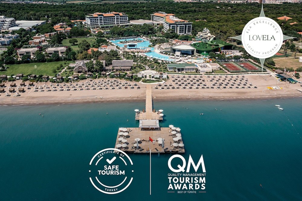 Местоположение отеля Ela Quality Resort Hotel в городе Серик, район (Белек), располагается всего в нескольких минутах от следующих достопримечательностей и объектов: Cornelia Golf Club. Кроме того, неподалеку расположены следующие важные объекты: Belek Mosque. Отель категории «5-зв. » находится вблизи следующих достопримечательностей и объектов: Carya Golf Club и Garden of Tolerance. Номера Почувствуйте себя как дома в одном из 550 номеров с кондиционером и другими удобствами, в числе которых минибар и ЖК-телевизоры. Бесплатный проводной и беспроводной доступ в интернет позволит вам всегда оставаться на связи. Кроме того, к вашим услугам спутниковое телевидение. В ванных комнатах вы найдете фен и халат. Предоставляются следующие удобства и услуги: телефон, сейфы и диван-кровать. Отдых, спа, удобства высшего класса Расслабьтесь в спа-центре, который предлагает массаж, процедуры по уходу за телом и процедуры по уходу за лицом. Вы можете воспользоваться многочисленными возможностями для отдыха, такими как аквапарк (бесплатно), открытые теннисные корты и открытый бассейн. Отель в средиземноморском стиле предоставляет дополнительные услуги и удобства: бесплатный беспроводной доступ в интернет, уход/присмотр за детьми (за дополнительную плату) и зал игровых автоматов. Кафе и рестораны Это отель типа "все включено". Еда и напитки в местных ресторанах и барах входят в стоимость номера. Дополнительная плата может взиматься за питание в некоторых ресторанах, специальные обеды и блюда, за определенные напитки и другие услуги. Когда вы проголодаетесь, отель приглашает вас посетить один из 2 ресторана(ов). Для тех, кто предпочитает уединиться, отель предоставляет круглосуточное обслуживание номеров. Загляните в бар у бассейна или бар у кромки бассейна, чтобы расслабиться за любимым напитком. Ежедневно предлагается бесплатный завтрак. Тип завтрака — шведский стол. Бизнес, другие удобства и услуги Для удобства гостей предоставляется следующее: бесплатный высокоскоростной (проводной) доступ в интернет, круглосуточный бизнес-центр и рабочее место с компьютером. Если вы планируете деловое или развлекательное мероприятие, отель предлагает вам пространство площадью 1614 кв. фут., а также конференц-центр. Предоставляется бесплатная парковка сотрудником отеля. Полезная информация Следующие услуги необходимо резервировать заранее: массаж и спа-процедуры. отель примет ваш заказ в случае предварительного обращения. В отеле запрещено держать животных, включая служебных. За проживание дополнительных гостей может взиматься плата в зависимости от политики отеля. При регистрации по прибытии необходимо предъявить официальное удостоверение личности с фотографией и кредитную карту или оставить залог наличными на случай возникновения непредвиденных затрат. Выполнение особых запросов зависит от ситуации на момент регистрации по прибытии и не гарантируется. Может взиматься дополнительная плата. Имя на кредитной карте, используемой для оплаты услуг при регистрации, должно совпадать с именем основного жильца, указанным при бронировании номера.