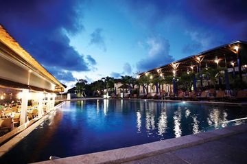 Местоположение отеля Ocean Blue Hotel Bali в городе Нуса-Дуа находится рядом с пляжем, вблизи следующих достопримечательностей и объектов: Храмовый комплекс Пуджа Мандала и Пляж Нуса-Дуа. Отель категории «4,5-зв. » находится вблизи следующих достопримечательностей и объектов: Пляж Менгиат и Торговый центр Bali Collection. Номера Почувствуйте себя как дома в одном из 141 номеров с кондиционером и другими удобствами, в числе которых личные бассейны и личные бассейны для ныряния. Отдельные внутренние дворики. Кабельное телевидение и DVD-проигрыватель не дадут вам скучать, а бесплатный беспроводной доступ в интернет позволит всегда оставаться на связи. Индивидуальные ванные комнаты, раздельные ванны и душевые. В ванных комнатах установлены гидромассажные ванны и душ с дождевой насадкой. Отдых, спа, удобства высшего класса Расслабьтесь в спа-центре, который предлагает массаж, процедуры по уходу за телом и процедуры по уходу за лицом. Если вы ищете возможности для спорта и отдыха, к вашим услугам оздоровительный клуб, открытый бассейн и спа-ванна. Дополнительные услуги и удобства: бесплатный беспроводной доступ в интернет, уход/присмотр за детьми (за дополнительную плату) и комната игровых автоматов. Гости могут добраться до близлежащего пляжа или торгового центра специальным бесплатным автобусом. Кафе и рестораны Когда вы проголодаетесь, отель приглашает вас посетить ресторан, где подается завтрак, обед и ужин. Кроме того, к вашим услугам кафетерий/кафе, где всегда можно перекусить, а также круглосуточное обслуживание номеров. Если вас одолела жажда, загляните в бар/лаунж, бар на пляже или бар у бассейна. Бизнес, другие удобства и услуги Для удобства гостей предоставляется следующее: бизнес-центр, прокат автомобилей представительского класса и ускоренная регистрация по прибытии. За дополнительную плату гостям предоставляется трансфер из аэропорта и обратно (предоставляется по запросу). Полезная информация Следующие услуги необходимо резервировать заранее: массаж и спа-процедуры. отель примет ваш заказ в случае предварительного обращения. Для резервирования воспользуйтесь контактной информацией из письма с подтверждением бронирования. На территории отеля есть открытый бассейн, детский бассейн и спа-ванна. Другие места отдыха и развлечений: оздоровительный клуб и баня/парная. Перечисленные ниже виды отдыха и развлечений предоставляются в самом отеле или недалеко от него (может взиматься дополнительная плата). В местном спа-центре имеются процедурные комнаты (4), в том числе для семейных пар. Предоставляемые услуги: массаж, процедуры по уходу за лицом, скрабы для тела и процедуры по уходу за телом. В спа-центре предлагается следующее: спа-ванна. В спа-центре предлагается ряд лечебных процедур, включая следующие виды терапии: ароматерапия. Следующие услуги необходимо резервировать заранее: массаж и спа-процедуры. отель примет ваш заказ в случае предварительного обращения. Для резервирования воспользуйтесь контактной информацией из письма с подтверждением бронирования.