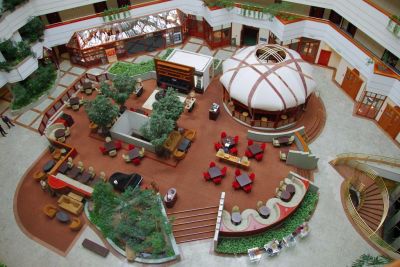 Отель Rahat Palace, сочетающий в своем облике классический стиль и новейшие технологии, располагается всего в нескольких минутах от центрального государственного музея и музея искусств им. А. Кастеева. Этот 5-звездочный отель находится в непосредственной близости от казахского театра драмы имени м. О. Ауэзова и Алматинского центрального стадиона. Отель предлагает для размещения 285 номеров с кондиционером, минибаром, сейфом, беспроводным интернетом и спутниковым телевидением. В ванных комнатах предоставляются дизайнерские туалетные принадлежности и фен. Практически из всех номеров отеля открывается потрясающий вид на горы Алатау. Завтрак для гостей сервируется в ресторане «Джамбул», который предлагает буфет из горячих и холодных блюд, ассортимент свежеиспеченного домашнего хлеба и пирогов. Кафе-бар «Юрта» - это оазис и популярное место встреч в центре величественного атриума. Здесь предлагают большой выбор кофе, легких закусок, домашних пирогов и мороженого, подаваемых на протяжении всего дня. Ресторан «Гриль» славится своими нежными стейками, а также широким разнообразием блюд мировой кухни. В летнее время на территории Rahat Palace гостей ждет кафе под открытым небом «Тау–Самал», предлагают холодное пиво, прохладительные напитки и блюда, приготовленные в русской печи на дровах. Гости отеля могут воспользоваться закрытым бассейном, сауной и фитнес-центром. Для удобства гостей предоставляется следующее: круглосуточный бизнес-центр, высокоскоростной Интернет, бесплатные газеты в холле, химчистка или прачечная, парковка, аренда лимузина и автомобиля c водителем, вызов врача, ювелирный магазин и магазин подарков, услуги консьержа и парикмахерский салон. Отель предлагает 8 конференц-залов для проведения деловых или развлекательных мероприятий.