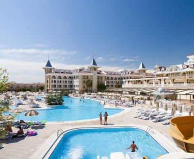 Краткое описание К услугам гостей этого отремонтированного отеля, расположенного на пляже в городе Сиде, 2 бассейна, танцпол и спа-салон. В элегантно оформленных номерах оборудованы собственные балконы, с которых открывается вид на сад или море. В числе удобств номеров, в которые поступает большое количество солнечного света, бесплатный Wi-Fi, телевизор с плоским экраном и небольшой гостиный уголок. Все номера располагают собственной ванной комнатой с душем и феном. Искупавшись в крытом или открытом бассейне, гости смогут расслабиться в гамаках или поиграть в теннис. Также на частном пляже отеля можно заняться водными видами спорта, в числе которых виндсерфинг и катание на каноэ. Кроме того, в отеле работает аквапарк и мини-клуб. В главном ресторане с утра до позднего вечера подаются блюда интернациональной кухни. К вашим услугам 3 бара и бар у бассейна, в котором во второй половине дня подаются пирожные. В роскошной обстановке лаунджа с куполообразным потолком можно отведать мятный чай. Сотрудники круглосуточной стойки регистрации помогут организовать прокат автомобилей и трансфер от/до международного аэропорта Анталии, до которого 64 км. До оживленного центра Антальи можно доехать за 1,5 часа.