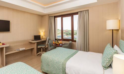 Краткое описаниеОтель Golden Way Giyimkent находится в районе Эсенлер, в 9 минутах езды от автобусного терминала Эсенлера. К услугам гостей терраса, номера с кондиционером и бесплатным WiFi, а также турецкая баня и фитнес-центр. Все номера в отеле Golden Way Giyimkent оформлены в современном стиле и оснащены мини-баром и телевизором с плоским экраном. Собственная ванная комната с душем укомплектована феном и бесплатными туалетно-косметическими принадлежностями. На круглосуточной стойке регистрации можно обменять валюту и заказать доставку еды и напитков в номер. За дополнительную плату в отеле предоставляются услуги прачечной, химчистки, а также гладильные услуги. Гости могут почитать ежедневные газеты в номере или на террасе. Каждое утро в отеле сервируют завтрак «шведский стол». На территории отеля работают ресторан Ilgaz с обслуживанием по меню и кафе Erciyes Terrace, где предлагают обед и ужин. В кондитерской Ayder гости могут заказать кофе с тортом, пирожным, печеньем или бутербродами. В отеле Golden Way Giyimkent организуют трансфер до автобусного терминала Эсенлера, аэропорта Ататюрка, бизнес-центров Текстилкент и Гийимкент, комплекса ISTOC, выставочного центра CNR Expo, экспоцентра Туяп и нескольких торговых центров неподалеку. Расстояние от отеля до аэропорта Стамбула имени Ататюрка составляет 16,5 км. Гостям предоставляется бесплатная частная парковка на территории.
