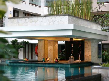 Aston Kuta is a newly built hotel under Aston International chain that is scheduled to open on 1st September 2009. This hotel is situated in the secluded enclave of Tuban, an easy 5 minute drive from the airport (approximately 2 km), and a short stroll to the vibrant shopping and entertainment area of Kuta. Aston Kuta is featuring 209 guest rooms with contemporary and modern minimalist design. Each room comes with bathtub and shower, 32 inch LCD with cable TV, in-room safe deposit box, writing desk, self-controlled Air Conditioning, mini bar, IDD telephone, and hair dryer. 77 units of Superior rooms come with either Queen bed or Twin bed. Main restaurant is located on lobby area with 120 seating capacity, it is open from 6.30 am to 11 pm. This hotel also features roof-top restaurant with 120 seating capacity that is open from 5pm to 1am. Modern 5-storey building. Lobby is medium level with modern minimalist design concept. Aston Kuta Hotel and Residence is newly built hotel and scheduled to open its door on 1st September 2009. This hotel features 209 guestrooms, roof-top restaurant, spa & body treatment, business centre, outdoor swimming pool, kids pool, kids club, gym and 6 function rooms that can accommodate from 24 people in U-shape style up to 250 people in theatre style. (CB 07/09).