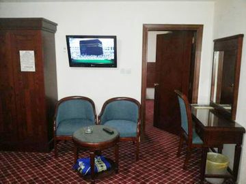 Casablanca Hotel is situated only 10 minutes from Al Haram and its conveniently located in a central location which allows every traveller to reach the main point of interests. it is also 5 to 8 minutes far from the Holy Mashaer ( Mina, Mezdelefa and Arafat) Rooms are medium in size as well as bathrooms. all equipped with standard facilities and bight in colours. 135 rooms which includes also some suites Hotel has a traditionl restaurant Its a traditional building with 135 rooms Lobby is medium in size fully equipped with modern facilities and painted with brighty colours Hotel Casablanca its part of the Casablanca Group. The Hotel includes 135 rooms and suites designed according to latest hotel service criteria to satisfy each traveller and suit the Hajj and Umrah guests. All required services are avaialble such as the Mosque , men and women restaurants , 3 elevators , doctor room, lounge for women and men.
