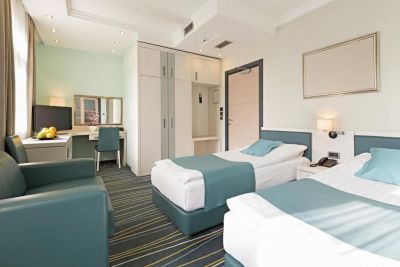 Kopernikus Hotel Prag находится в самом сердце города Белград. Улица князя Михайлова и Площадь Республики расположены в 10 минутах ходьбы. Этот 4-звездочный отель — вариант с прекрасным расположением: Здание парламента находится в 1 км, Nikola Pasic-Сквер — в 1,1 км от него. Почувствуйте себя как дома в одном из 82 номеров с кондиционером и другими удобствами, в числе которых минибар и ЖК-телевизоры. Бесплатный проводной и беспроводной доступ в интернет позволит вам всегда оставаться на связи. Кроме того, к вашим услугам кабельное телевидение. Собственные ванные комнаты, душ. Предоставляются бесплатные туалетные принадлежности и фен. Предоставляются следующие удобства и услуги: телефон, сейфы и письменные столы. К вашим услугам терраса и сад, где можно отдохнуть и насладиться красивым видом, а также прочие услуги и удобства, в числе которых бесплатный беспроводной доступ в интернет. Этот отель предоставляет дополнительные услуги и удобства: услуги консьержа и телевизор в общественном месте. Когда вы проголодаетесь, зайдите в кафетерий/кафе. Тем, кому не хочется покидать свой номер, этот отель предлагает обслуживание номеров (по расписанию). Проведите отличный вечер в баре/лаунже. Завтрак (шведский стол) предлагается ежедневно с 7:00 до 10:00 за дополнительную плату. Для удобства гостей предоставляется следующее: бесплатный (проводной) доступ в интернет, бизнес-центр и бесплатные газеты в холле. Для проведения мероприятий предоставляется следующее: конференц-центр и конференц-зал. Трансфер из аэропорта и обратно (круглосуточно) и услуга встречи на вокзале предоставляется за дополнительную плату. Полезная информация Отель предлагает трансфер от аэропорта и вокзала (может взиматься дополнительная плата).В номера допускаются только зарегистрированные постояльцы.Дополнительные платежи Следующие платежи и залоги взимаются отелем во время оказания соответствующей услуги, при регистрации по прибытии или регистрации при отъезде. Доплата за завтрак (шведский стол): от 1000 RSD с человека (приблизительно)Плата за трансфер до аэропорта для взрослого: от 2300 RSD за человека (в одну сторону)Плата за самостоятельную парковку: от 2100 RSD за ночьПлата за парковку на стоянке поблизости: от 2100 RSD на за ночьДомашние животные: от 2400 RSD за питомца за ночьПлата за поздний выезд (при наличии свободных номеров): от 2600 RSDПлата за раскладную кровать: от 1800 RSD за деньВозможно, приведенный выше список неполон. Суммы платежей и залогов могут быть указаны без учета налога и могут быть изменены. Обязательные налоги и сборы Следующие дополнительные сборы оплачиваются в отеле: Городской налог: от 160 RSD за человека за ночьПриведенный перечень содержит все указанные отелем сборы. Однако взимаемая сумма может изменяться в зависимости, например, от бронируемого номера или продолжительности пребывания. За размещение дополнительных гостей может взиматься доплата в зависимости от внутренних правил отеля.При регистрации по прибытии необходимо предъявить официальное удостоверение личности с фотографией, а также кредитную (или дебетовую) карту или оставить залог наличными на случай возникновения непредвиденных затрат.Выполнение особых запросов зависит от ситуации на момент регистрации по прибытии и не гарантируется. Может взиматься дополнительная плата.