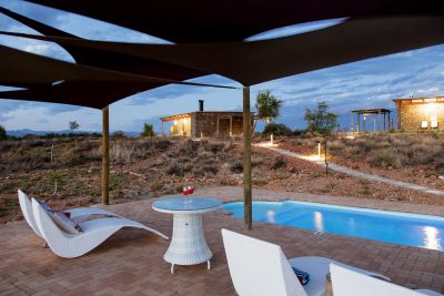 Этот уникальный отель расположен в районе Кляйн-Кару на Садовом маршруте Южной Африки, в 7 км от города Оудсхорн, на территории действующей люзернской фермы площадью 2500 гектаров, в окружении множества достопримечательностей, таких как страусиные фермы, пещеры Канго и знаменитый винный маршрут. Идиллическая обстановка, привлекающая людей всех слоев общества, может предложить каждому что-то, будь то отдых или приключения. Посетители могут насладиться множеством развлечений, включая туры с дикими сурикатами, рыбалку, греблю на каноэ, наблюдение за птицами, езду на велосипеде, наблюдение за звездами, массаж, купание. в бассейне с соленой водой или узнайте о повседневной работе фермы. Вечера можно провести в ресторане с открытой верандой, откуда открывается великолепный вид, где подают экологически чистые блюда и местные деликатесы, дополненные вином из погреба, а уютные вечера можно провести в роскошных номерах в главном здании или в более уединенном. коттеджи с собственным бассейном, расположенные в 3 км от главного дома.