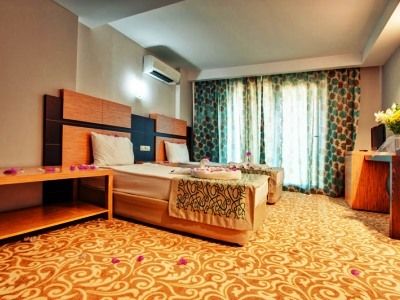 Situated first line to the sea in the popular holiday region of Konakli on the Turkish Riviera, this hotel offers a 200 m long sandy beach and an attractive spa area. The city of Alanya with its shops, restaurants, bars and attractions such as the Red Tower or the yachting harbour is about 13 km away, the international airport of Antalya is at a distance of about 115 km.