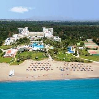This beach hotel, which was refurbished, has 420 rooms. It is air-conditioned and has a lobby, 24-hour reception and check-out service, a hotel safe, currency exchange facility, lift access, souvenir shops and a hairdresser's salon. It also offers a main buffet restaurant, a la carte restaurants, a bar, snack bar, open-air disco bar, a games room, TV room and spa centre. Internet access is complimentary in rooms, the lobby and public areas and laundry services and a cycle hire service are available for a fee. It has 3 meeting rooms. Parking facilities are available to guests arriving by car. Younger guests are sure to enjoy the playground and kids' club. Situated on a magnificent 120,000 mВІ sea front lot covered with pistachio pine trees and facing onto a 300 metre-long sandy beach, the hotel enjoys a tropical sunny climate throughout the year. A shopping centre and several archaeological sites can be found in the vicinity of the hotel. Kadriye is some 5 km away while Belek is 7km. Antalya Airport is about 35 km away and Antalya itself is approximately 45 km away. The rooms are ideally decorated and were recently refurbished. All standard rooms have a private balcony or terrace, carpet, a seating area, satellite TV, centrally regulated air conditioning/heating, a direct dial telephone, safe deposit box, a minibar, en suite bathroom, hairdryer and a smoke detector. The entertainment and activity team organise activities for both young and old, including daily sports, tournaments and evening entertainment. Beach volleyball, volleyball, mini-football, basketball, archery, darts, table tennis, 6 tennis courts with a teacher providing lessons, step and stretching, water aerobics, aerobics, water polo, a gym and pool/snooker are all provided. The nearby beach is sandy and comes with sun loungers and parasols. Banana boating, waterskiing, jet skiing, motor boating, windsurfing, sailing, catamaran boating, canoeing, rowing and pedal boating are offered there for a fee. Guests may take advantage of the water park with 3 swimming pools (one indoor, two outdoor) with pool bar, children's pool, sun loungers and parasols. There is also a 27-hole golf course some 800 metres away (subject to fees). The health centre offers a hot tub, sauna and steam room. For a fee, massage and spa treatments are offered.