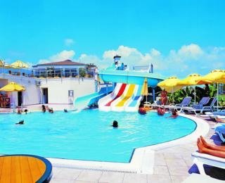 The hotel is located on the coast at Serik. Public transport connections are within around 200 m of the hotel, and the touristic centre is 2 km away. Nearby attractions include Aspendos and the waterfalls at Kursunlu and Manavgat, around 30 and 35 km away respectively. The beach hotel consists of 235 rooms, and welcomes business and leisure guests with a large range of services and facilities provided for a pleasant stay. The hotel has 1 indoor and 1 outdoor swimming pool with a waterslide, children's swimming area, poolside snack bar and sun loungers. Guests may enjoy massages and SPA treatments and a wide range of water sports and events.