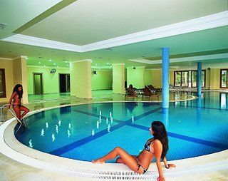 Specialising in entertainment, this hotel complex is the ideal place in which to find relaxation and offers a good base from which to discover the lively surroundings. From the hotel, guests are offered stunning panoramic views of the clear sea. This establishment comprises 650 rooms, including spacious family rooms, a lobby area with reception desk manned around the clock, a hotel safe, a currency exchange facility, a cloakroom, lift access, a TV lounge, Internet access (charges apply), bicycle rental (for an additional fee) whilst younger guests may like to let off steam in the playground or at the kids' club. The hotel's facilities include, moreover, a newspaper stand, a cafГ©, a bar, a nightclub, a hairdresser, a theatre auditorium and a restaurant. A laundry service is additionally available (charges apply). Those arriving by car may make use of the car park. This complex is located on the Turkish Riviera near to Belek and directly on the beach. It is a mere 35 km from Antalya airport. Shopping and entertainment venues are to be found just 3 km away. The rooms come with an en suite bathroom with hairdryer, a direct dial telephone, satellite/ cable TV, a radio, Internet access, a minibar, a double or king-size bed and a balcony or a terrace. The air conditioning and central heating can be individually adjusted. The outdoor complex is home to 3 swimming pools, a children's paddling area, a poolside snack bar and both sun loungers and parasols. Guests are also invited to take advantage of the spa area with its indoor pool, sauna, steam bath and massage treatments (for an additional fee). Guests may try their hand at a game of tennis or table tennis (charges apply), volleyball, billiards (for an additional fee) or badminton and take part in gymnastics and aerobics courses. There is also a varied activity programme to keep everyone entertained. Various water sports (for an additional fee) are on offer on the beach including diving, jet skiing, windsurfing or pedal boating. Sun loungers and parasols are also available on the beach, laid out ready for use. Guests can select their breakfast, lunch and dinner from a buffet. Lunch and the evening meal may alternatively be taken Г la carte and the evening meal may also be chosen from a set menu. Half-board, full-board, all-inclusive, and Bed & Breakfast stays may be booked.