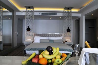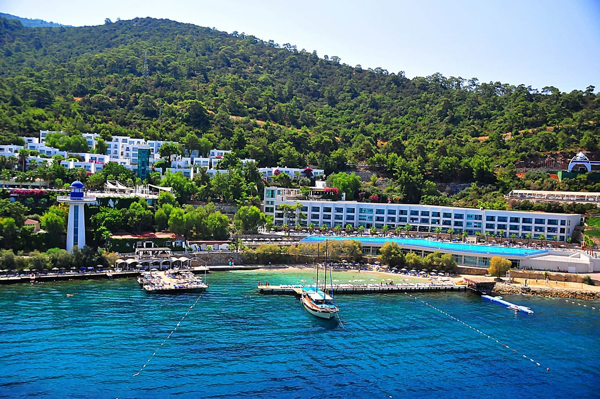 Местоположение отеля Blue Dreams Resort & SPA - All Inclusive (Бодрум), район (Торба), располагается в пределах легкой доступности от следующих достопримечательностей и объектов: Музей мореходства в Бодруме и Галикарнасский мавзолей. Этот 5-звездочный курорт находится вблизи таких достопримечательностей, как Замок Бодрум и Яхтенный порт Бодрума. Номера Почувствуйте себя как дома в одном из 289 номеров с кондиционером и другими удобствами, в числе которых минибар и ЖК-телевизоры. Отдельные меблированные балконы или внутренние дворики. Беспроводной интернет (за дополнительную плату) позволит всегда оставаться на связи, а спутниковое телевидение не даст скучать. Индивидуальные ванные комнаты, душ. Предоставляются бесплатные туалетные принадлежности и фен. Удобства Побалуйте себя посещением спа-центра, который предлагает массаж, процедуры по уходу за телом и процедуры по уходу за лицом. Искупавшись в одном из 4 открытых плавательных бассейна, вы можете провести остаток дня на закрытом пляже. Этот курорт предоставляет дополнительные услуги и удобства: бесплатный беспроводной доступ в интернет, услуги консьержа и уход/присмотр за детьми (за дополнительную плату). Гости могут добраться до близлежащих магазинов специальным автобусом (за дополнительную плату). Кафе и рестораны Это курорт типа «все включено». Еда и напитки в местных ресторанах и барах входят в стоимость номера. Дополнительная плата может взиматься за питание в некоторых ресторанах, специальные обеды и блюда, за определенные напитки и другие услуги. Когда вы проголодаетесь, курорт приглашает вас посетить один из 5 ресторана(ов) и 2 кафетерии/кафе. Если вам захотелось выпить освежающий напиток, загляните в бар на пляже, 3 баров/лаунжей или 2 баров у бассейна. Бизнес, другие удобства и услуги Для удобства гостей предоставляется следующее: ускоренная регистрация по прибытии, ускоренная регистрация при отъезде и химчистка или прачечная. Предоставляется бесплатная парковка сотрудником отеля. Полезная информация В этом отеле есть смежные/соседние номера, которые могут быть предоставлены в зависимости от наличия. Доступ к некоторым услугам может быть ограничен. В отеле запрещено держать животных, включая служебных. За размещение дополнительных гостей может взиматься доплата в зависимости от внутренних правил отеля. При регистрации по прибытии необходимо предъявить официальное удостоверение личности с фотографией и кредитную карту или оставить залог наличными на случай возникновения непредвиденных затрат. Выполнение особых запросов зависит от ситуации на момент регистрации по прибытии и не гарантируется. Может взиматься дополнительная плата.