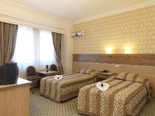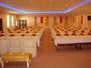 Refurbished in 2011, this established conference hotel offers comfortable accommodation for those looking for a base from which to explore the spectacular region. There is a total of 114 rooms. The premises are air-conditioned and guests are welcomed in the lobby, which offers a 24-hour reception and a 24-hour check-out service, as well as a hotel safe, currency exchange and lift access to the upper floors. Guests can relax in the TV lounge and the hotel has a bar, restaurant and a disco. Younger guests can let off steam in the children's playground. The hotel is also suitable for conferences and social functions, as there are a number of meeting rooms and wireless Internet access is provided. Guests can also enjoy the convenience of room and laundry services (fees apply). Those arriving by car may leave their vehicles in the hotel car park. The hotel is located in Avanos, approximately 450 m from the centre where local amenities can be found and 240 m from the bus station. Many of the fascinating places to see in the area are within a 15 km radius of the hotel. Erkilet Airport is about 77 km away and Nev?ehir Kapadokya Airport is approximately 33 km away. All rooms are en suite with a shower, bath and a hairdryer. Guests can enjoy a good night's rest on their double bed. The rooms have carpeted flooring and are equipped with air conditioning and heating, a minibar, satellite/cable TV, a safe box and wireless Internet access. Guests can enjoy the hotel's outdoor swimming pool and the sunbathing terrace complete with sun loungers and parasols. There is also a children's swimming area and a poolside snack bar. For those wishing to keep fit the hotel has a gym. There is also a professional football field and volleyball on offer. Some facilities may not be operational due to weather/seasonal conditions.