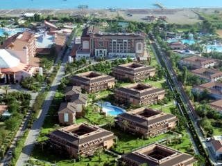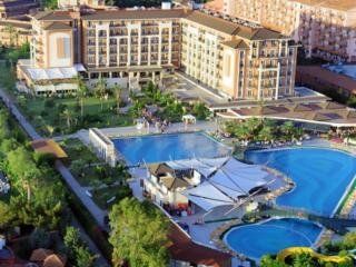 Opened in 2004, this air-conditioned beach hotel is situated in extensive gardens and is surrounded by swimming pools and sun terraces. The hotel comprises a total of 613 rooms. The inviting lobby features a 24-hour reception desk, lifts, a safe and a currency exchange facility. The pleasant complex also features a cafГ©, a small supermarket, various shops, a hairdressing salon, a bar, a nightclub, and a TV room. Furthermore there is an air-conditioned Г la carte restaurant with a non-smoking area and highchairs available for children, and a public Internet connection. Laundry and medical services are available on request. Younger guests may let off steam in the playground as well as participate in kids' club activities. There is a car park for guests arriving by car. This modern hotel lies close to the soft sandy beach of Boa Vilagem. The district town of Manavgat, where there are regular markets, can be easily reached with public minibuses (14 km). Antayla airport is located 80 km from the hotel. Each room comes with an en suite bathroom, with a bath, shower and hairdryer, a direct dial telephone, satellite/ cable TV, individually adjustable air conditioning and central heating. A minibar, a small fridge, a hire safe, and a balcony or terrace also feature as standard. The well-maintained outdoor complex offers heated swimming pools, a poolside snack bar, and a sun terrace with sun loungers and parasols. In addition, there is a sauna, a Turkish bath, a steam room, and various massage treatments on offer. Sports enthusiasts may try out a variety of water sports including water skiing, windsurfing, canoeing and pedaloes. Further sports options include tennis, table tennis, basketball, volleyball, beach volleyball, billiards/ snooker, darts, archery and aerobics. There is also a gym and the activity programme provides variation and entertainment for children and adults alike. Guests may select their breakfast, lunch and dinner from buffets. It is also possible to have dinner Г la carte. All-inclusive stays may be booked.