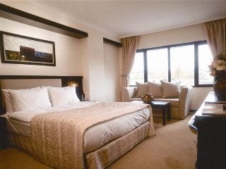 Situated just outside of picturesque Goreme with its spectacular volcanic rock formations and cave houses, this hotel provides an atmosphere that is both casual and elegant. Nearby Goreme offers various restaurants and museums in addition to the national park, and guests may enjoy horseback riding or a hot air balloon tour of the surrounding hills and valleys filled with fairy chimneys. Alternatively, guests can stay in the hotel to make use of the hotel spa with sauna, whirlpool and Turkish baths, or simply relax in the sun next to the serene hotel pool. The hotel's 79 rooms are cosy with central heating and air conditioning, seating area, internet access, and tea and coffee making facilities. Business travellers will appreciate the spacious conference room suitable for meetings and seminars, while everyone can sample tasty treats and refreshing drinks at the hotel's bakery and four bars. A marvellous place to discover and explore Cappadocia.