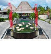 Located at Sindu Beach, this hotel is just a 20-minute drive from Ngurah Rai International Airport and the centre of Kuta. The dГ©cor of the hotel is exceptionally designed, with Western zodiac symbols and Chinese astrology signs reflected in its artworks. The central theme, the world of astrology, runs throughout, starting with the public area around the entrance and lobby and going right through to the different types of villa units. They all feature modern appliances, as well as contemporary built-in furniture contrasted with traditional Balinese accessories, striking a balance between modern and old-fashioned. Most of the materials used are locally-sourced Indonesian products, with the wood and copper being of particular note. The colour scheme displays the influence of the masculine with softly sensual tones in the wooden floors, rattan, stones and marble used throughout the villas.