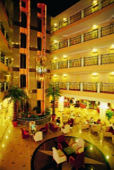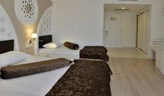 The hotel is located approximately 6.5 km west along the coast from the resort of Side, in an area known as Kumkoy. It has a private section of the beach, which is situated just 400 metres away. There are a range of facilities to suit most ages, which include an atrium lobby, main buffet restaurant with indoor and outdoor seating. There is a games room, TV lounge and disco. Those arriving by car may leave their vehicles in the hotel car park. All rooms come with a private bathroom and are also equipped with a balcony/terrace except adult economy room. The hotel provides an entertainment programme for adults and there is also a sauna and hammam. There is an indoor and an outdoor pool in the hotel grounds with a children's section, poolside snack bar and sun terrace with sun loungers and parasols laid out for use by the water's edge. Sun loungers and parasols are provided on the hotel's own sandy beach.