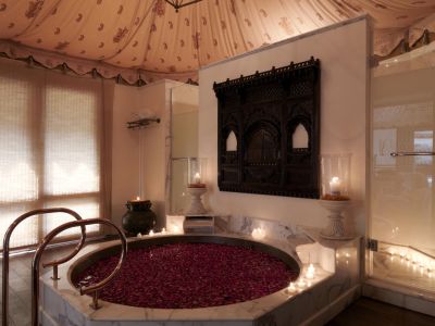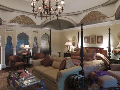 Роскошный отель Rambagh Palace с ухоженными садами и красивой индийской архитектурой является бывшей резиденцией махараджи Джайпура. Для удобства гостей предлагаются гостей крытый и открытый бассейны, а также полный комплекс спа-услуг. Просторные номера с кондиционером оформлены при помощи богатых тканей, элегантных ковров и ручной росписи на стенах. Телевизор с плоским экраном, сейф и мини-бар установлены во всех номерах. В современных ванных комнатах есть душевая кабина и отдельная ванна. В спа-центре Jiva Grande предлагают расслабляющие сеансы массажа. Гости также могут позаниматься йогой с опытными инструкторами или потренироваться в тренажерном зале. Дворецкие помогут гостям организовать поездки в старинной конной упряжке каждый вечер. На территории обустроена бесплатная парковка. Завтрак и легкие закуски подают в кафе Rajput Room, а в кафе Verandah предложат традиционный послеобеденный чай, шампанское и коктейли перед ужином. Кроме того, блюда индийской кухни сервируют в ресторане Suvarna Mahal, на отрытом воздухе можно пообедать в ресторане Steam, а на напитки заглянуть в бар Polo. Известный как «Жемчужина Джайпура» отель Rambagh Palace находится приблизительно в 3,5 км от городского дворца, гаремного дворцового крыла Хава-Махал и обсерватории Джантар-Мантар. В 11 км расположен аэропорт Джайпура.