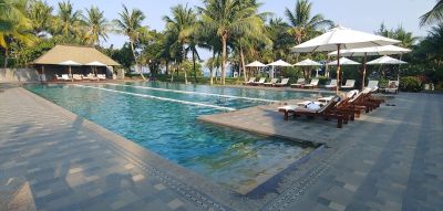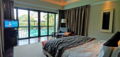 Sophisticated rooms, suites & villas in an upmarket beach resort with 4 restaurants, 2 bars & a spa. Отель более чем отличный во всех смыслах. Изначально заселили в номер с частичным видом на море, но в нем не работал, а точнее жил своей жизнью душ. Нужно было держать переключатель с крана на душ, чтобы вода шла, в противном случае после 30 секунд переключатель возвращался в начальное положение и вода переставала литься вообще... После пары звонков о решении проблемы приходил китайский сантехник, но ничего ему не удалось, потому что какие-то бестолочи сломали попросту смеситель... Нам это было на руку, потому как переселили в номер категорией еще выше и сам номер был больше квадратов на 40. Уборка 3 раза в день (такого я еще не встречал нигде), свежие фрукты раз в два дня. Банные полотенца реально банные, большие. Есть все необходимые принадлежности вплоть до иголки с нитками. Холодильник на кухне, кофемашина с капсулами. Завтраки очень даже добротные - всегда есть что поесть, даже для веганов найдутся блюда. Львиная доля отдыхающих - это китайцы, русских несколько семей (если хочется отдохнуть и не встречаться с соотечественниками - это самое место, мы реально отдохнули. Ну а если уж так хочется - вперед в ренесанс отель - там на момент нашего отдыха было человек 200). По-русски не говорит никто, по-английски 2 человека на ресэпшн. Все остальные - только китайский. Либо через онлайн-переводчик, коряво, но понять друг друга можно в принципе. Пара-тройка нюансов - просят депозит в 5000 юаней типа за мини-бар. Представляет он из себя пару банок пива и 3 газировки... Если говоришь, что не пользуешься мини-баром, тогда 1000 юаней залог за то, чтоб ты ничего не разбил в номере. Оплата картой не работает у них никакая, кроме Union Pay. Master и Visa вообще никак. Нужно брать наличку. Банкоматы есть влево метров 1000-1500 ICBC. И вправо метров 800 Bank of China, там же и фудкорты, рестораны и пара супермаркетов. Комары мелкие, но грызут постоянно ночью, при условии, что в каждом номере рапторы и спреи стоят. Их это до лампочки, не лишним будет взять с собой что-то серьезнее. Сам пляж с желтым, скрипучим песком, но не таким, как наш, не так липнет... Лежаков немного, но нам хватало всегда... Полотенца выдают там же отдельные. Бассейн с освежающей водой, в море была теплее. При условии, что нам с погодой не очень повезло и каждый день был ветер и дождик периодически. Волны были сантиметров по 60-100, что дало вспомнить детство когда прыгали на волнах. Заплывать дальше чем по горло не дают, сразу бежит китайский спасатель со свистком и зовет обратно на мель. Дно песчаное, но из-за таких миништормов нагоняло камни периодически, об один поцарапал ногу, аптечка у спасателей есть, перекисью обработали... При этой погоде температура воды и чистота не менялись, что было отлично, у нас при одном дне такой погоды в воду было бы не зайти вообще. Купались по факту только русские. Китайцы, одетые в куртки и штаны, фоткали и снимали на видео;) Очень много зелени - разные пальмы, фикусы, и прочее. Территория очень даже немаленькая, можно вечерком прогуляться.... На новогоднюю ночь ребята из отеля начиная с 23.45 до 00.30 пускали фейрверки, никто из соседних этого не делал, несомненно было приятно, потому как им наш новый год вообще по боку.... Как итог - отель несомненно клевый, с удовольствием вернулся бы еще раз, но только чтоб с погодой нормальной. Очень долго искала отзывы не на к