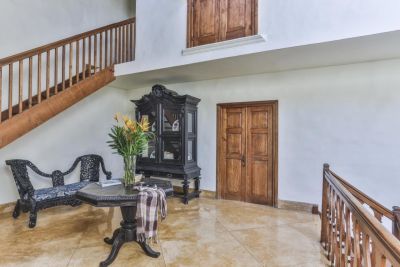 История виллы началась 300 лет назад, когда Шри-Ланка была единственным в мире источником корицы высшего качества, голландский торговец специями построил драгоценный дом в укрепленном портовом городе Галле. Недавно отреставрированный Роханом Алувихарой, протеже известного Шри-ланкийского архитектора Джеффри Бавы, дом "Thambili House By Edwards Collection" сегодня является оазисом комфорта, уединения и изысканности для взыскательных посетителей. "Thambili House" расположен в нескольких метрах от 300-летней мечети Масджид Мира Джумма и знаменитого маяка форта Галле. "Thambili House" является одним из редких объектов недвижимости в форте Галле, откуда открывается вид на живописную южную часть Индийского океана, а также может похвастаться бассейном. Интерьеры со вкусом оформлены с использованием настоящей антикварной мебели из черного дерева и каламандры 16, 17 и 18 веков и современного местного искусства. В "Thambili House" есть 2 спальни с двуспальными кроватями и 1 семейная спальня, расположенные на верхнем этаже. Спальни хорошо меблированы, в них установлены настоящие антикварные кровати королевского размера из черного дерева с балдахином и кондиционеры. Главная спальня выходит на террасу с видом на море. А семейный номер выходит на террасу с видом на бассейн и маяк. Во всех номерах есть собственные ванные комнаты с душем. В Thambili House работает специальный дворецкий, который заботится о комфорте гостей.