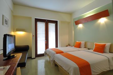 Harris Tuban is ideally located only 1 km or around 5 minutes from Ngurah Rai International Airport and Tuban beach. Also close to main shopping areas and night life spots as this hotel is only 10 minutes from Kuta Beach. 24 Hours free Shuttle to Ngurah Rai International Airport.This hotel offers 66 rooms and suites. All rooms are located around the pool, offering a contemporary design in a modern and trendy style. All rooms feature individual air-conditioner, satellite television, mini bar, tea and coffee making facilities, IDD telephone and free WIFI connection. All rooms look very bright with dominant white combined with bright orange color. Bathrooms are with separate shower box. Harris room is measured by 25 sqm.Breakfast is available at this property.Modern type of building with fresh resort feeling.This accommodation has a medium lobby.This hotel is very simple but very nice. Offering facilities such as swimming pool, spa, and meeting rooms for maximum 60 persons in theatre style. Hotel also can help to organize tours and car rental are available in Harris Tuban. Rafting, Cycling and Mountain trekking can also be organized for those who are adventurous. (03/09CB).
