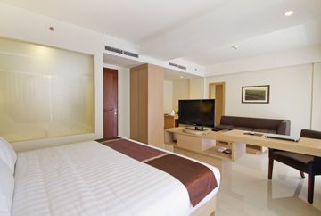 This hotel is located in the upmarket area of Seminyak in Bali. The hotel is located within easy walking distance of a number of attractions in the area, as well as a wealth of shopping opportunities, dining options and entertainment venues. Guests will find themselves in a prime setting from which to explore the delights that the city has to offer. The hotel is located just 8 km away from Ngurah Rai International Airport. This upscale hotel is sure to meet the expectations of even the most discerning traveller. The hotel enjoys a stunning design, incorporating the elements of the human senses. The guest rooms are exquisitely designed, enveloping visitors in a cocoon of peace and serenity. The rooms are well equipped with modern amenities. Guests will appreciate the range of facilities and services that this wonderful hotel has to offer.