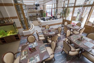 Номерной фонд отеля подразделяется на несколько категорий – «Стандарт», «Твин», «Полулюкс» и «Люкс». Все номера выдержаны в традиционном классическом стиле, прекрасно меблированы и оборудованы. Площадь номеров варьируется от 15 до 68 кв. м и может состоять из одной или двух комнат с санузлом. Удобно распланировано внутреннее пространство комнат. Созданы зоны для сна, отдыха и работы. Даже в однокомнатных номерах не ощущается скованности и дискомфорта. К большим жидкокристаллическим телевизорам подключено многоканальное спутниковое телевидение. В каждом номере установлен телефон с прямой международной связью. Бесплатный и безлимитный интернет с подключением по Wi-Fi доступен во всех жилых помещениях. Для поддержания комфортного микроклимата все номера оборудованы высокоэффективной системой вентиляции и кондиционирования воздуха. Приятным сюрпризом любому гостю после трудного дня будет мини-бар с разнообразными напитками. Ванные комнаты всегда укомплектованы полотенцами, халатами и тапочками. В номерах может быть круглосуточно организовано питание с меню от шеф-повара, а внимательный и квалифицированный персонал поможет решить любую проблему. На четвертом этаже отеля расположен конференц-зал. На занимаемых им 100 кв. м могут с комфортом расположиться 50 человек. Интерьер помещения выполнен под старину с резной мебелью ручной работы. На потолке висят люстры внушительных размеров. Пол устлан износостойким ковровым покрытием. Практически на всю длину конференц-зала растянулись шикарные столы антикварного элит-класса с мягкими стульями для всех участников. Он оборудован микрофонами для проведения конференций. Зал подходит для проведения политических и деловых переговоров, заседаний и встреч различной направленности.