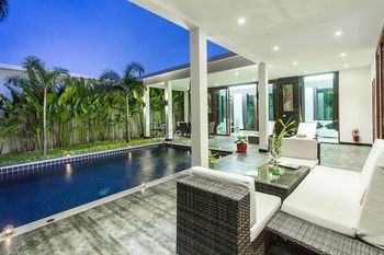 Black Lotus is a luxurious collection of one- two- and three- bedroom villas set in luxurious greenery offering peace and beauty at every turn.The beach several golf courses Black Mountain Water Park and Hua Hin Floating Market are all within 20 minutes away.The all Villa 5-star resort is located around 10 km away from Hua Hin town center and has 14 magnificent Villas to choose from. All villas consist of kitchen facilities with outdoor BBQ grill large televisions safety deposit box walk in closets showers and separate bath tubs.Most villas have a private pool and is perfect for a small family or romantic couple that craves a life in privacy luxurious and peaceful surroundings in a tropical setting.The resort offers fantastic facilities including a fully equipped fitness center game room 40 meter outdoor pool to help you unwind after an action packed day in the city. The private veiled cabanas around the main pool and lake give a touch of romance.Bells' ...