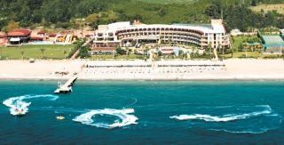 This 4-storey luxury hotel presents modern architecture and comprises a total of 179 rooms of which 3 are suites. Fully air conditioned, facilities include a spacious foyer area with a 24-hour reception desk and lifts in addition to a safe, a main restaurant with a non-smoking area as well as three further Г la carte restaurants in which Turkish and international specialities may be sampled. It is just a short walk to a selection of bars that lie beside the beach and the hotel offers many more amenities including an Internet cafГ©, room service and laundry service (for an additional fee). Guests are able to make small purchases at the hotel supermarket and other small shops to be found onsite and it is possible to pay a visit to the in-house hairdresser's salon. Night-time offerings include a nightclub. Younger visitors may participate in the kids' club activities and let off steam in the playground. Surrounded by pine trees, this hotel lies in front of the picturesque backdrop of the Taurus mountain range directly beside the sand/pebble beach of Г‡amyuva and some 5 minutes walk from the resort centre. There is a minibus service several times a day to Kemer, which lies some 7km away and to the city of Antalya, which is 50km from the hotel and where guests will discover a diverse selection of shops, eateries and sights. Antalya airport is 60km away and can easily be reached by making use of the public transport service. The modern rooms are fabulously equipped and almost every room features a balcony or terrace from which wonderful views may be enjoyed out over the sea. Each of the rooms comes with an en suite bathroom with hairdryer, a direct dial telephone, a TV, a minibar, a hire safe, and central air-conditioning. On request, and according to availability, non-smoking rooms may be booked. (Promo/econ rooms do not have a balcony). An abundance of sports are on offer to guests. It is possible to pay a visit to the beach or to kick back beside the outdoor pool with separate children's pool and Jacuzzi. There is also a spacious sun terrace where sun loungers and parasols have been laid out ready for use (also available on the beach). A daily entertainment programme is organised in the pool area and sports enthusiasts may make use of the in-house gym as well as play tennis or volleyball or participate in the aerobics sessions. There is an indoor pool, a sauna and Turkish baths available within the hotel and further spa treatments such as beauty treatments and massages are on offer (additional fee). Moreover, various water sports such as surfing as well as pedalo hire are on offer along the hotel's private beach. All meals are available in a buffet form in the main restaurant, additionally there are 3 a la carte restaurants offering Turkish, Seafood and Mediterranean cuisine.