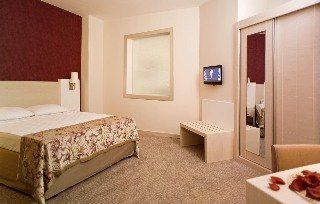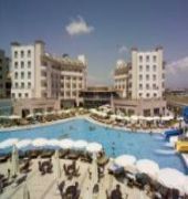 This hotel is located in the popular holiday destination of Side-Kumkoy-Evranseki, only 300 m from the beach. Guests may find links to the public transport network 100 m from the hotel. The centre of Evrenseki, offering various tourist venues is easily accessible. Antalya Airport is 60 km from the hotel. Opened in 2009, this modern beach hotel comprises a total of 205 rooms, spread over 5 floors. Facilities on offer to guests include a lobby area, a hotel safe and a currency exchange facility. Guests also have a hairdressing salon, a games room and a TV lounge at their disposal. The younger guests can let off steam at the children's playground or the kids' club. The standard comfortable rooms at this hotel are pleasantly decorated in muted tones fully-equipped as standard. The rooms also feature either a balcony or a terrace.