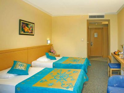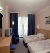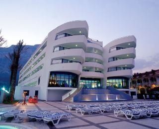 This resort hotel is wonderfully located over-looking the beach in the district of Beldibi; the Taurus Mountains are a back-drop and the larger resort of Kemer is a 10 minute car ride away. Built in the style of a catamaran with a modern interior design and furnishings, the hotel has 223 rooms situated on 15,000sqm of land. Featuring a range of activities to suit most ages, including a spa, kids club, outdoor & indoor pool, waterslides and a private beach with a decked pier, guests will also enjoy the culinary choices and small, on-sight shopping centre. Public transport and taxis are available in front of the hotel providing easy access to the many attractions to be found in the area. (Some facilities may not be operational year round due to the weather / seasonal conditions).