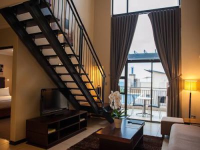Constructed in 2009, the hotel buildings feature intriguing modern architecture and are surrounded by manicured lawns. This family-friendly city hotel offers guests a good feeling of privacy in a secure environment and comprises a total of 52 split-level suites with a patio and provides long-stay self-catering options. It is ideal for business travellers and holidaymakers alike. Facilities on offer to guests at this air-conditioned establishment include a lobby area with a 24-hour reception and check-out service, a hotel safe, 24-hour security and a cloakroom. There is a restaurant and guests have conference facilities with capacity for 160 delegates in 2 venues at their disposal. They can also take advantage of the room and laundry services. There is a car park and covered garage parking (charges apply to both) for those arriving by car. This hotel is situated in the suburbs of Fairlands Johannesburg. Soccer City and the Coca Cola Dome are close by. Sandton City and Monte Casino are nearby for all seeking entertainment and much more. The hotel offers easy access to the N1 and Lanseria Airport. The stylishly furnished guest rooms have an elegant feel. All come with a private bathroom with a shower/bathtub and a hairdryer and offer a king-size bed. They are equipped with an LCD TV, music and Internet access as well as a safe. A functional kitchenette for self catering, with a fridge, a cooker and a microwave is available on request. Furthermore, tea and coffee making facilities, a washing machine, an ironing set and central heating units are provided in all accommodation as standard. All rooms also feature either a balcony or a terrace. This hotel features an outdoor swimming pool with sun loungers and parasols available to guests for an additional fee. Guests may select their continental breakfast from a buffet and the midday and evening meals may be enjoyed in buffet form, Г la carte or as a set menu. Guests coming from Lanseria Airport should turn left onto Malibongwe Drive, and after approximately 5 km turn right onto the R28 (N14) Krugersdorp motorway, towards Krugersdorp. At the first set of traffic lights turn left on to Hendrik Potgieter road. After approximately 10 km take the turnoff to 14th Avenue. Turn left on to 14th Avenue and drive straight for approximately 800 m. Turn right into Davidson Street and the hotel is situated on the right-hand side on the corner of 14th Avenue and Davidson.
