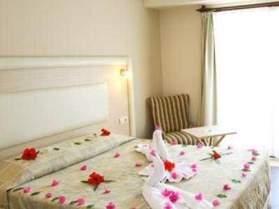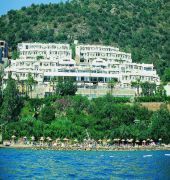 The hotel is located in Icmeler and situated above a wonderful beach at a distance of 1.5 km from the city centre of Bodrum. Bodrum Airport is approximately 35 km from the hotel. Guests are welcomed into a lobby with 24-hour reception and check-out service. The premises are air-conditioned and facilities include a games room and a TV lounge. There is a children's playground and a kids' club for younger guests to enjoy. Moreover, there is a restaurant, bar and a disco club. Guests can also take advantage of the hotel's car park. Bicycles may be hired at the hotel. The hotel rooms are air-conditioned and well equipped. Rooms are furnished with double beds and most of them have a balcony. The bathrooms come with a shower and a hairdryer. Internet access is also provided.