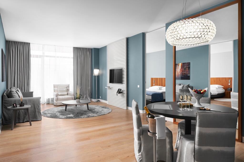Отель расположен в самом живописном центре города с видом на историческое Королевское озеро (Нижнее озеро). Crystal House Suite Hotel & SPA предлагает своим гостям 71 номер премиальной категории, из них 69 номеров площадью от 75 до 175 кв. метров. На 9-ом этаже расположены 2 пентхауса площадью по 300 кв.м. с огромной частной террасой в 300 кв.м., собственным зимним садом, панорамой на озеро и город, в том числе на Кафедральный собор на острове Иммануила Канта и новый стадион «Калининград». С террасы абсолютно каждого номера открывается прекрасный вид на озеро — шум городских улиц остается за дверью номера и создается впечатление тихой уединенности. Комфортабельные и просторные номера, летний ресторан Hoffmann Terrace с изысканной авторской кухней, уютный Morion SPA с обширной коллекцией спа-уходов для лица и тела – все это обладает неповторимым характером, способным удивить даже искушенных. НОМЕРА CRYSTAL SUITE Уютный 2-х комнатный номер-люкс площадью 70 м2 с террасой и видом на Нижнее озеро. Максимальная вместимость номера - до 3-х гостей. Возможна установка дополнительной кровати. BUSINESS SUITE Стильный номер-люкс площадью 135 м2 с 3-мя спальнями, просторной видовой гостиной и террасой с видом на Нижнее озеро. Максимальная вместимость - до 5-ти гостей. Возможна установка дополнительной кровати. SPA SUITE Дизайнерский 3-х комнатный номер-люкс площадью 145 кв.м. с двумя спальнями, просторной гостиной и террасой с видом на Нижнее озеро. Особенностью номера является наличие персональной спа-комнаты, где вы можете насладиться классической картой уходов для тела. Максимальная вместимость - до 3-х гостей. Возможна установка дополнительной кровати. FAMILY SUITE Семейный 3-х комнатный номер-люкс площадью 125 кв.м. с двумя уютными спальнями, в каждой из которых есть своя ванная комната и гардероб,. С просторной видовой гостиной номера и террасы открывается живописный вид на Нижнее озеро. Максимальная вместимость номера - до 6-ти гостей. Возможна установка дополнительной кровати в каждой спальне. SUITE DISABILITY ACCESS Номер-люкс с 3-мя комнатами площадью 105 кв.м, адаптированный для отдыха гостей с особыми потребностями. Номер располагает широкими проходами и дверьми, открывающимися наружу. Ванная комната оборудована санузлом с поручнями, удобным уровнем сантехники и душевой кабиной без бортиков в соответствии с международным стандартом. Отель предлагает весь необходимый перечень комфорта для гостей: вход в отель имеет специальную автоматическую дверь, в общественных зонах оборудованы пандусы и специальные санузлы. Максимальная вместимость номера - до 6-ти гостей. Возможна установка дополнительной кровати в каждой спальне. Размещение служебных животных (собак-поводырей) допускается бесплатно для людей с ограниченными возможностями. ROYAL GARDEN SUITE Панорамный дизайнерский пентхаус площадью 300 кв.м. с двумя спальнями, просторной видовой гостиной, биокамином, зимним садом и приватной террасой в 300 кв.м. с завораживающим видом на озеро и город. Для обеспечения абсолютного комфорта наших гостей, выбирающих проживание в пентхаусе, мы предлагаем услуги персонального батлера. Максимальная вместимость номера - до 4-х гостей. ROYAL SUITE Панорамный роскошный пентхаус площадью 300 кв.м. с 3-мя спальнями в каждой из которых есть своя ванная комната и гардеробная. В номере располагается уютная и просторная гостиная с оборудованны