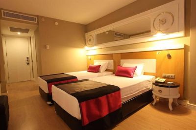 Местоположение отеля Serenis Hotel - All Inclusive — хороший вариант в городе Сиде. Западный пляж Сиде находится в 1 мин. езды на автомобиле, а Аквапарк — в 8 мин. езды. Этот отель «все включено» — вариант с прекрасным расположением: Театр Аспендос находится в 29,7 км, Тематический парк Land of Legends — в 46,2 км от него. Номера Почувствуйте себя как дома в одном из 358 номеров с кондиционером и другими удобствами, в числе которых минибар и плоскоэкранные телевизоры. Отдельные балконы или внутренние дворики. Беспроводной доступ в интернет (за дополнительную плату) позволит всегда оставаться на связи, а спутниковое телевидение не даст скучать. В ванных комнатах душ и бесплатные туалетные принадлежности. Удобства Побалуйте себя посещением спа-центра, который предлагает массаж. После дня, проведенного на пляже, вы можете воспользоваться другими возможностями для отдыха, в числе которых закрытый бассейн и фитнес-центр. Этот отель предоставляет дополнительные услуги и удобства: беспроводной интернет (за дополнительную плату) и уход/присмотр за детьми (за дополнительную плату). Кафе и рестораны Это отель типа «все включено». Еда и напитки в местных ресторанах и барах входят в стоимость номера. Дополнительная плата может взиматься за питание в некоторых ресторанах, специальные обеды и блюда, за определенные напитки и другие услуги. Зайдите в один из 2 ресторанов, которыми располагает этот отель. Тем, кому не хочется покидать свой номер, предлагается круглосуточное обслуживание номеров. Загляните в бар/лаунж или бар у бассейна, чтобы расслабиться за любимым напитком. Бизнес, другие удобства и услуги Гостям предоставляются следующие услуги и удобства: услуги прачечной и кофе/чай в общественном месте. Предоставляется бесплатная самостоятельная парковка. Дополнительные платежи Следующие платежи и залоги взимаются отелем во время оказания соответствующей услуги, при регистрации по прибытии или регистрации при отъезде. Плата за проводной доступ в интернет в номере: 2.00 EUR за час (тарифы могут различаться) Плата за беспроводной доступ в Интернет в общественных зонах: 2.00 EUR за за час (тарифы могут различаться) Возможно, приведенный выше список неполон. Суммы платежей и залогов могут быть указаны без учета налога и могут быть изменены. За размещение дополнительных гостей может взиматься доплата в зависимости от внутренних правил отеля. При регистрации по прибытии необходимо предъявить официальное удостоверение личности с фотографией, а также кредитную (или дебетовую) карту или оставить залог наличными на случай возникновения непредвиденных затрат. Выполнение особых запросов зависит от ситуации на момент регистрации по прибытии и не гарантируется. Может взиматься дополнительная плата. Serenis Hotel - All Inclusive — хороший вариант в городе Сиде. Западный пляж Сиде находится в 1 мин. езды на автомобиле, а Аквапарк — в 8 мин. езды. Этот отель «все включено» — вариант с прекрасным расположением: Театр Аспендос находится в 29,7 км, Тематический парк Land of Legends — в 46,2 км от него.Это отель типа «все включено». Еда и напитки в местных ресторанах и барах входят в стоимость номера. Дополнительная плата может взиматься за питание в некоторых ресторанах, специальные обеды и блюда, за определенные напитки и другие услуги. Зайдите в один из 2 ресторанов, которыми располагает этот отель. Т