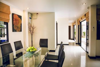 Местоположение отеля Отель на вилле (Паттайя), район (Пратумнак-Хилл), располагается всего в нескольких минутах от следующих достопримечательностей и объектов: Гора Пхра Бат и Храм Большого Будды. Этот 4,5-звездочный отель на вилле находится в непосредственной близости от таких достопримечательностей, как Khao Phra Tamnak и Смотровая площадка в Паттайе. Номера Почувствуйте себя как дома в номерах с кондиционером и другими удобствами, в числе которых личные бассейны и проекционные ТВ-панели. Отдельные меблированные внутренние дворики. Кухни оснащены следующим оборудованием и удобствами: полноразмерный холодильник или морозильник, плита и микроволновая печь. Кабельное телевидение и DVD-проигрыватель не дадут вам скучать, а бесплатный беспроводной интернет позволит всегда оставаться на связи. Индивидуальные ванные комнаты, в которых установлены глубокие ванны для купания и бесплатные туалетные принадлежности. Удобства Воспользуйтесь разнообразными возможностями для отдыха и развлечений, такими как открытый бассейн и спа-ванна. Этот отель на вилле предоставляет дополнительные услуги и удобства: бесплатный беспроводной доступ в интернет, помощь туристам/услуги по бронированию билетов и место для пикника. Кафе и рестораны Отель на вилле предоставляет обслуживание номеров (по расписанию). Бизнес, другие удобства и услуги Для удобства гостей предоставляется следующее: ускоренная регистрация по прибытии, ускоренная регистрация при отъезде и химчистка или прачечная. Трансфер из аэропорта и обратно (круглосуточно) предоставляется за дополнительную плату, на территории отеля есть бесплатная самостоятельная парковка. Полезная информация Отель предлагает трансфер от аэропорта (может взиматься дополнительная плата). Гостям необходимо сообщить о своем прибытии за 48 часов до прибытия, используя контактную информацию из письма с подтверждением бронирования. В номера допускаются только зарегистрированные постояльцы. Дополнительные платежи Следующие платежи и залоги взимаются отелем во время оказания соответствующей услуги, при регистрации по прибытии или регистрации при отъезде. Доплата за завтрак (английский): 200 THB с человека (приблизительно) Плата за трансфер до аэропорта для взрослого: 2500.00 THB за транспортное средство (в одну сторону) Возможно, приведенный выше список неполон. Суммы платежей и залогов могут быть указаны без учета налога и могут быть изменены. Обязательные налоги и сборы Следующие дополнительные сборы оплачиваются в отеле: Залог наличными: 3000.00 THB Приведенный перечень содержит все указанные отелем сборы. Однако взимаемая сумма может изменяться в зависимости, например, от бронируемого номера или продолжительности пребывания. За размещение дополнительных гостей может взиматься доплата в зависимости от внутренних правил отеля. При регистрации по прибытии необходимо предъявить официальное удостоверение личности с фотографией и кредитную карту или оставить залог наличными на случай возникновения непредвиденных затрат. Выполнение особых запросов зависит от ситуации на момент регистрации по прибытии и не гарантируется. Может взиматься дополнительная плата. Отель на вилле (Паттайя), район (Пратумнак-Хилл), располагается всего в нескольких минутах от следующих достопримечательностей и объектов: Гора Пхра Б