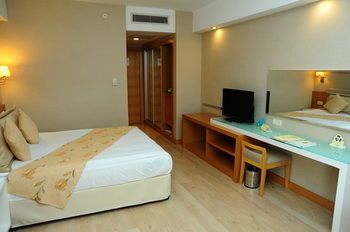 Местоположение отеля Trendy Palm Beach - All Inclusive (Сиде) находится у моря, вблизи следующих достопримечательностей и объектов: Агора и Гавань Сиде. Этот 5-звездочный отель находится в одном регионе с такими достопримечательностями, как Водопад Манавгат и Театр Аспендос. Номера Почувствуйте себя как дома в одном из 320 номеров с кондиционером и другими удобствами, в числе которых бесплатные минибары и ЖК-телевизоры. Отдельные балконы. Бесплатный беспроводной интернет позволит всегда оставаться на связи, а спутниковое телевидение не даст скучать. В ванных комнатах установлены глубокие ванны для купания и бесплатные туалетные принадлежности. Удобства В отеле есть собственный спа-центр, который предлагает массаж, процедуры по уходу за телом и процедуры по уходу за лицом. Искупавшись в одном из 3 открытых плавательных бассейна, вы можете провести остаток дня на закрытом пляже. Этот отель предоставляет дополнительные услуги и удобства: бесплатный беспроводной доступ в интернет, зал игровых автоматов и парикмахерский салон. Кафе и рестораны Это отель типа «все включено». Еда и напитки в местных ресторанах и барах входят в стоимость номера. Дополнительная плата может взиматься за питание в некоторых ресторанах, специальные обеды и блюда, за определенные напитки и другие услуги. Когда вы проголодаетесь, отель приглашает вас посетить один из 4 ресторана(ов). Для тех, кто предпочитает уединиться, отель предоставляет круглосуточное обслуживание номеров. Загляните в бар/лаунж или бар у бассейна, чтобы расслабиться за любимым напитком. Бизнес, другие удобства и услуги Для удобства гостей предоставляется следующее: химчистка или прачечная, круглосуточная работа стойки регистрации и многоязычный персонал. Трансфер из аэропорта и обратно (круглосуточно) предоставляется за дополнительную плату, на территории отеля есть бесплатная самостоятельная парковка. Полезная информация В отеле предоставляется трансфер от следующих точек: аэропорт (может взиматься дополнительная плата). Гостям необходимо предварительно сообщить сведения о своем путешествии в отель, используя контактную информацию из письма с подтверждением бронирования. В отеле запрещено держать животных, включая служебных. Дополнительные платежи Следующие платежи и залоги взимаются отелем во время оказания соответствующей услуги, при регистрации по прибытии или регистрации при отъезде. Плата за трансфер до аэропорта для взрослого: 130 EUR за место (туда и обратно) Плата за поздний отъезд: 50 EUR Плата за сейф в номере: 1 EUR за день Возможно, приведенный выше список неполон. Суммы платежей и залогов могут быть указаны без учета налога и могут быть изменены. За размещение дополнительных гостей может взиматься доплата в зависимости от внутренних правил отеля. При регистрации по прибытии необходимо предъявить официальное удостоверение личности с фотографией и кредитную карту или оставить залог наличными на случай возникновения непредвиденных затрат. Выполнение особых запросов зависит от ситуации на момент регистрации по прибытии и не гарантируется. Может взиматься дополнительная плата. Trendy Palm Beach - All Inclusive (Сиде) находится у моря, вблизи следующих достопримечательностей и объектов: Агора и Гавань Сиде. Этот 5-звездочный отель находится в одном регионе с такими достопримечательностями,