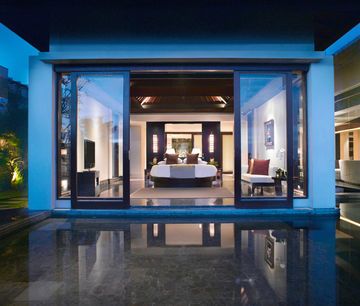 Set high on the cliffs near to the Uluwatu Temple, Banyan Tree Ungasan brings definitive fine cliff top living to the renowned beach island of Bali. All villas are with pool located at the southernmost point of Bali, offers unparalleled views of the Indian Ocean, complete with a level of comfort and privacy synonymous with the Banyan Tree brand. Banyan Tree Ungasan is about 35 minutes drive from Ngurah Rai International Airport. Designed in line with the intricate ethos of Bali, each contemporary pool villa in Banyan Tree Ungasan is a private retreat, built to make the most of the resort magnificent vistas. Villa amenities include marble bathroom with sunken bath, a Balinese style outdoor shower, a private infinity pool, an outdoor jet pool, an outdoor daybed, and a Balinese pavilion. Carefully selected furnishings combine contemporary design with touches of Balinese artistry Bumbu restaurant is the main restaurant offering Indonesian and International cuisine. Ju-Ma-Na is a gourmet seafood and Tamarind for organic delicacies and herbal drinks. Balinese inspired architecture and exquisitely landscaped gardens. Luxury semi open concept lobby. Spacious in size, extensive seating arrangement with sofas. Lobby is overlooking to the ocean with combination of minimalist, traditional Balinese and modern design. Banyan Tree Ungasan Bali is a five star luxury resort. The facilities at the resort include the award winning Banyan Tree Spa, three world class restaurants and dining options, cascading swimming pools, gymnasium, executive meeting rooms, ballroom and children play area. (JH 24/06/10)