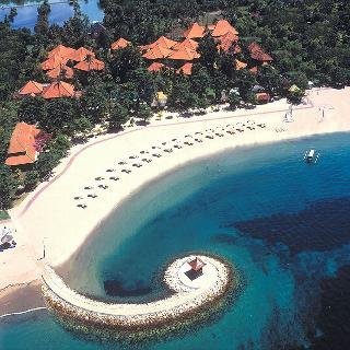 This hotel is situated in the south of the Indonesian island of Bali, directly beside the picturesque sandy beach of Nusa Dua. The various shopping facilities and entertainment venues in the town centre can be reached within only a few minutes. Preserving its unique cultural identity the island offers visitors a wide range of sites and unique attractions. Ngurah Rai airport lies around 20 minutes from the hotel. Built in a typical Balinese style the hotel is surrounded by exotic gardens. Dining options include a restaurant, a bar and several shops. Decorated with Rattan furniture and Balinese wood the air-conditioned rooms offer all modern comforts. They include a balcony or a terrace, with wonderful views of the grounds, along with an en suite bathroom with a bath or shower.